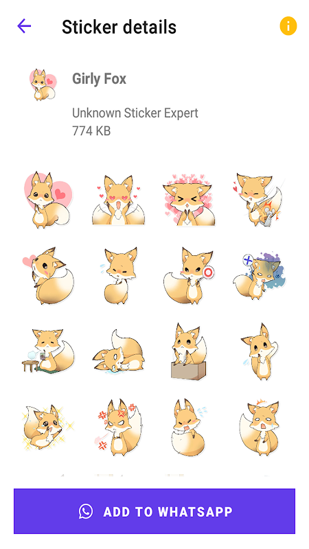 Aplikasi stiker ini tidak disetujui atau berafiliasi dengan WhatsApp Inc. Sebagian besar gambar rubah dihasilkan pengguna. Jika Anda percaya bahwa konten melanggar hak cipta Anda, silakan hubungi kami di: [email protected]