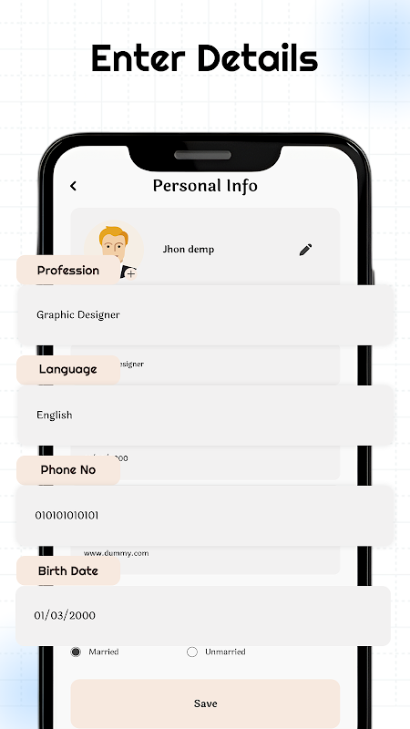 Anda dapat menambahkan setiap keterampilan dan pendidikan Anda di aplikasi pembuat CV ini untuk membuat resume yang lebih sempurna. Anda dapat menambahkan tujuan, detail pendidikan, pengalaman kerja, dan detail proyek, dll.