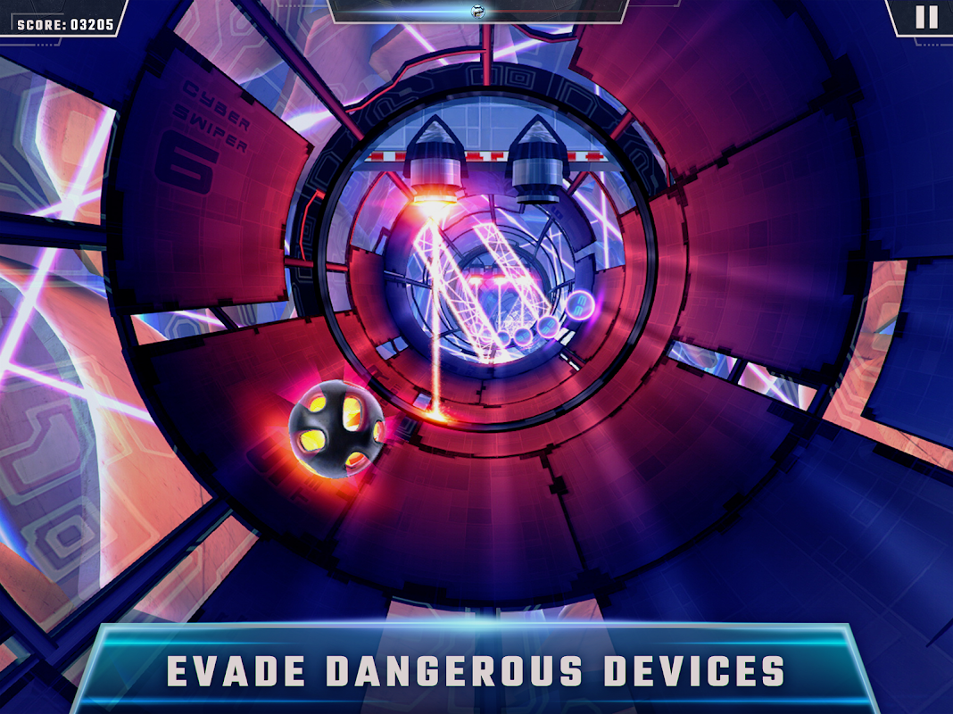 * Swipe LEFT and RIGHT to move the ball on the wall of the tunnel