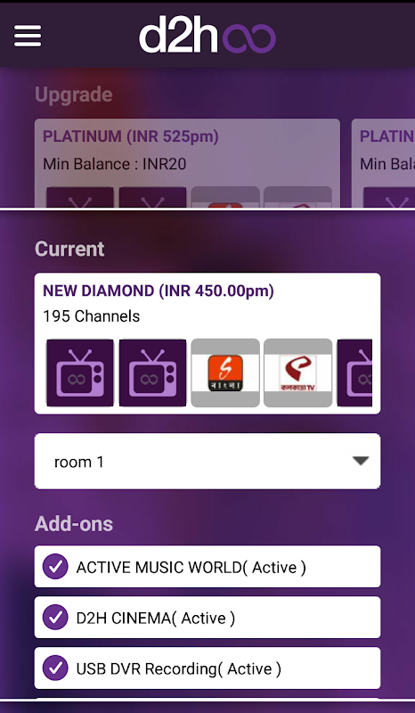 Versi lama d2h infinity: Recharge & Packs