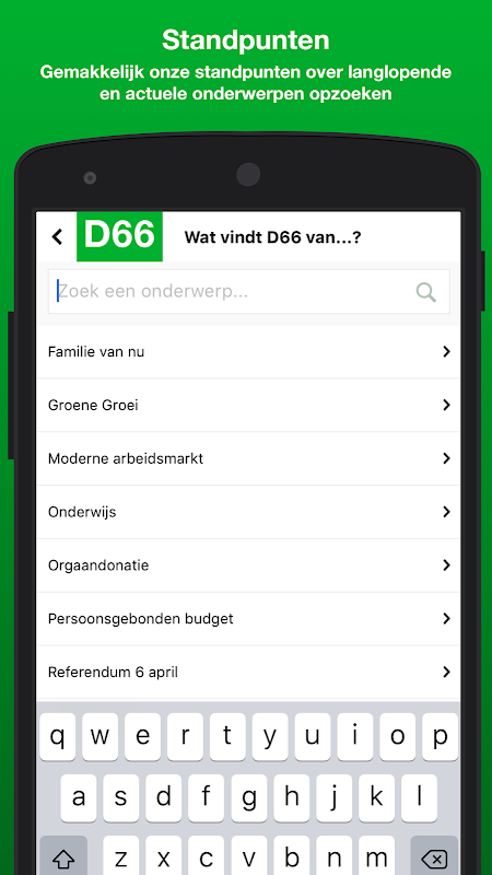 Ikuti politisi hidup dengan aplikasi D66 Sekarang.