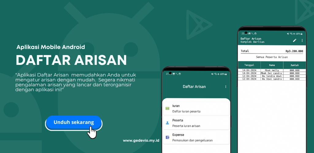 Dengan antarmuka yang intuitif dan fitur-fitur yang lengkap, aplikasi Daftar Arisan menjadi pilihan yang tepat bagi siapa pun yang ingin mengelola arisan dengan lebih efisien dan efektif. Dengan aplikasi ini, pengguna dapat dengan mudah mengatur iuran, mengelola data peserta, dan melacak keuangan arisan mereka dengan lebih baik, sehingga memastikan kelancaran dan keberlangsungan arisan dalam jangka panjang.