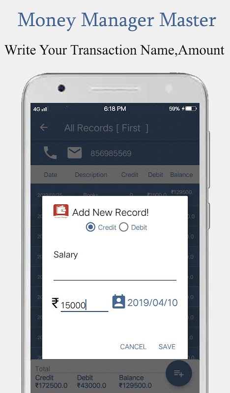 Accounts Manager app keep track of your daily money transactions by storing credit and debit history.