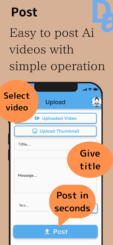 Anda dapat memposting video Ai Anda dengan judul dan deskripsi, dan karena DaiMBOW memiliki fungsi tag, Anda dapat memposting hingga 5 tag untuk video Anda. Namun, Anda harus login untuk mengunggah.