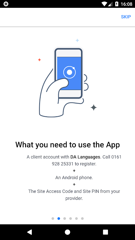 Aplikasi DALClient memungkinkan Anda terhubung langsung ke penerjemah profesional langsung melalui telepon dengan upaya minimum.