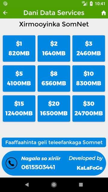 Waxaad si fudud u iibsan kartaa SomNet iyo SomTel data. Markii aad soo dirsatid lacagta inta Data aad sooneysid waxaad isla markiiba halaysaa datada aad dalbatay.