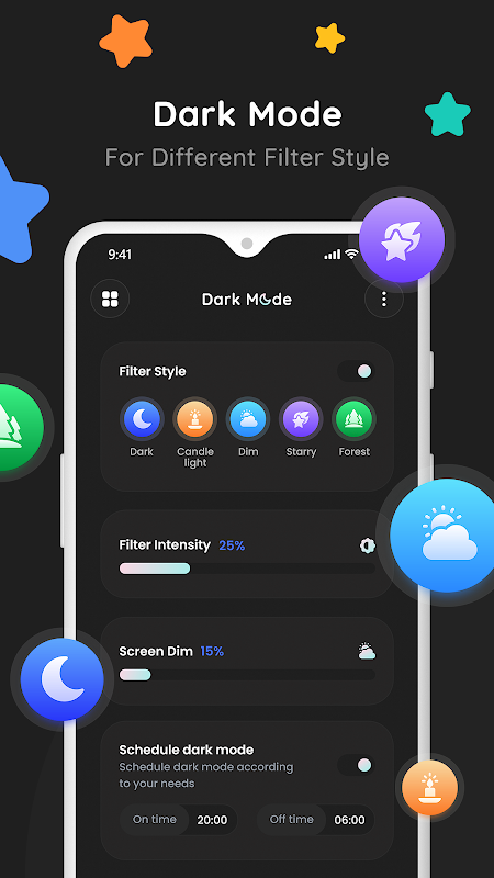 - Enabling dark mode helps reduce the strain on eyes and Our night mode app is optimized to consume extremely low levels of phone battery as it runs.