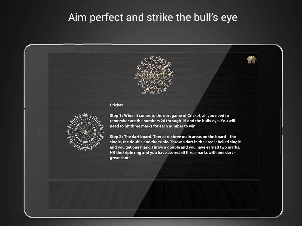 Permainan panah adiktif hadir dengan tiga segmen - sepanjang waktu, 501 dan kriket, dan berbagai tingkat kesulitan.