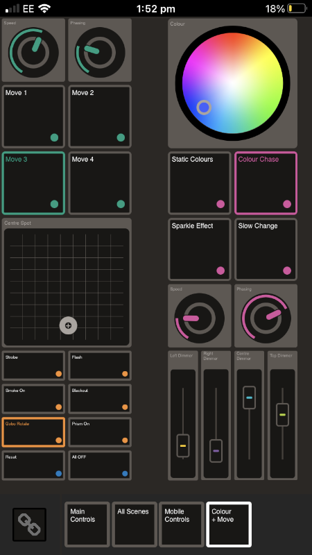 Daslight Remote mencerminkan layar Daslight 5 SENTUH Anda, memungkinkan Anda mengontrol acara dari ponsel atau tablet, seolah-olah Anda sedang duduk di depan komputer.