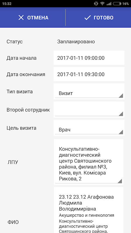 Есть возможность фиксировать координаты встреч.