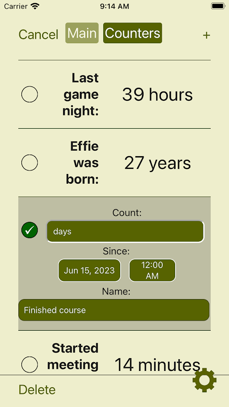 Hitung hari sejak tanggal berapa pun. Hitung hari, menit, jam, minggu, bulan atau tahun. Simpan daftar penghitung Anda.