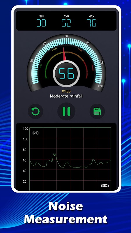 - Pengukuran Desibel yang Tepat: Dapatkan pembacaan akurat tingkat suara sekitar dalam desibel (dB), ditampilkan secara real-time pada antarmuka yang jelas dan intuitif.