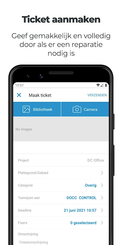 Dengan aplikasi gratis ini, mendaftar dengan cepat dan mudah kesalahan dari gedung atau area di mana Anda menggunakannya. Kami menyebutnya tiket. Melalui aplikasi ini, Anda memiliki daftar berguna dari semua tiket yang dibuat oleh Anda. Hal ini juga memungkinkan untuk chatting melalui aplikasi pada tiket Anda.