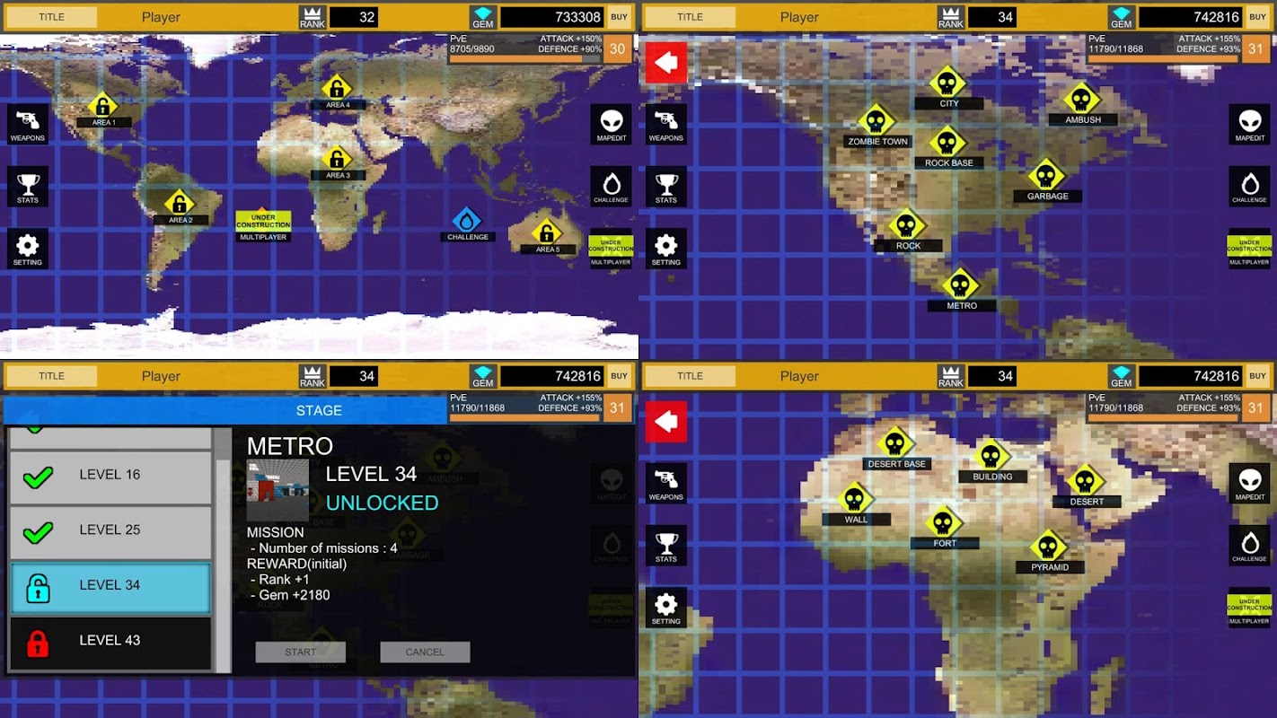 Various weapon like Machingun, Shotgun, Deagle, Grenade, RPG, Knife, AR.