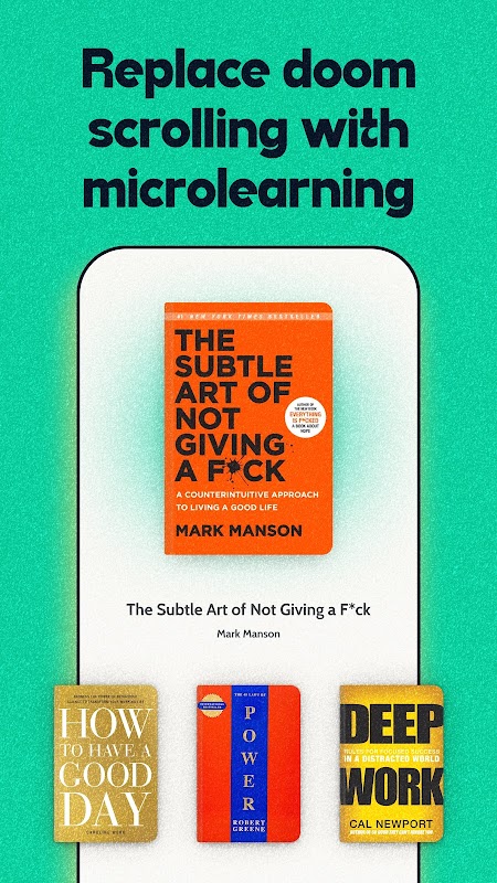 Pelajari sesuatu yang baru hanya dalam 5 menit, dengan akses harian tak terbatas ke 200.000+ ide hebat dari buku, artikel, podcast, video teratas, dan banyak lagi, hanya dalam 4 langkah mudah:
