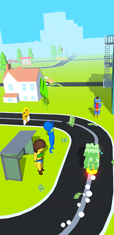 Pick up and drop off packages to customers to earn money and level up. Explore the world and discover new zones.