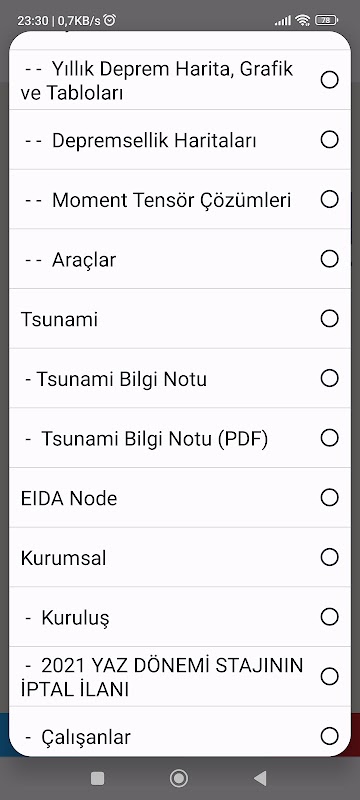 6) Melihat data Kandilli dan AFAD dengan satu aplikasi,