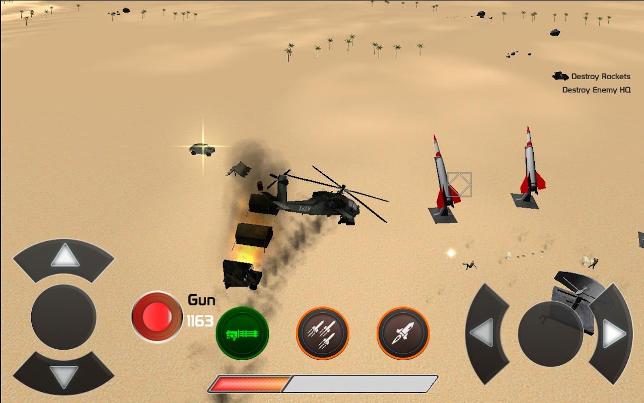 Desert Strikes 3D is an amazing oldschool war game, where you fight against enemy armies. Get in the Apache helicopter and fight against them with powerful weapons!