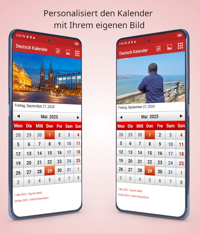 • Personalisasi Sie Ihren Kalender dengan Ihren eigenen Bildern.
