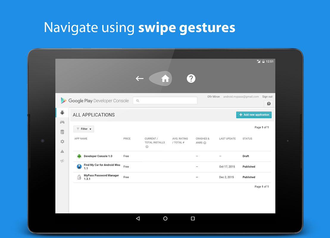 This is an unofficial app for the Google Play Developer Console.