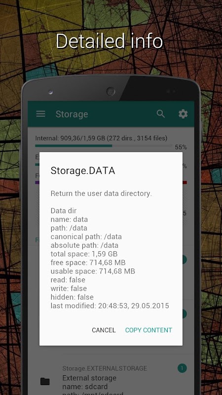 • Storage - internal, eksternal, statistik penuh, daftar jenis file