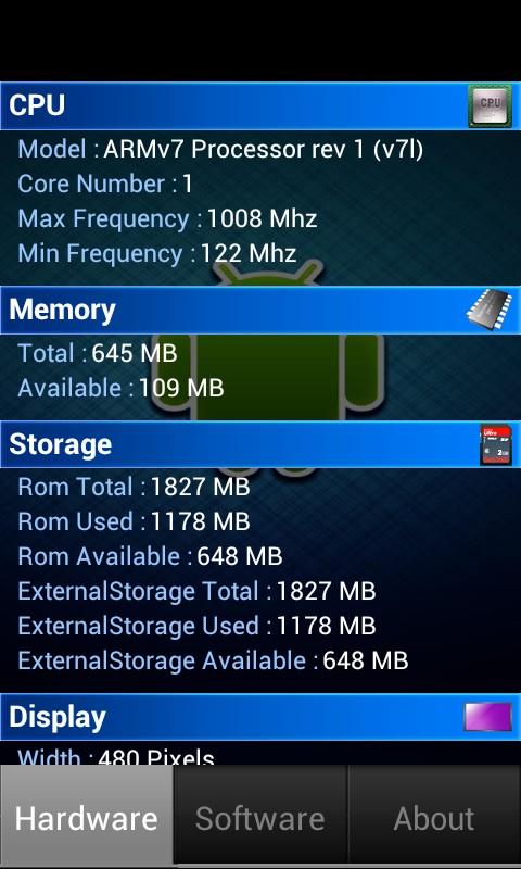 Use Device check tool allows you to quickly view the hardware and software information. CPU, memory, storage, displays, sensors, cameras, gps, systems, localization, telephone, wifi variety of information at a glance.