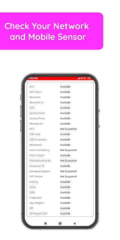 Device Info application displays your system information. Device Info provides you basic and advanced hardware information of your phone, with an attractive and beautiful user interface.