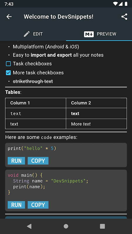 Aplikasi catatan untuk pengembang! Catatan penurunan harga dengan cuplikan kode dan kompilasi kode online.
