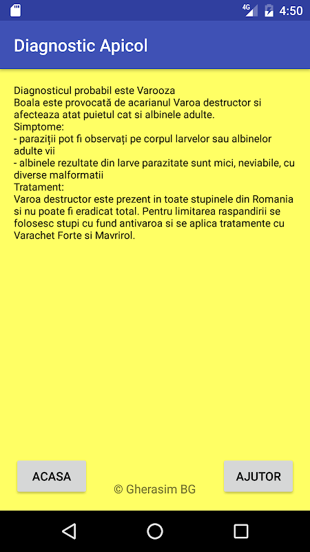 Daca va confruntati cu boli ale albinelor, aceasta aplicatie va ajuta sa stabiliti diagnosticul pe baza simptomelor observate in stup.