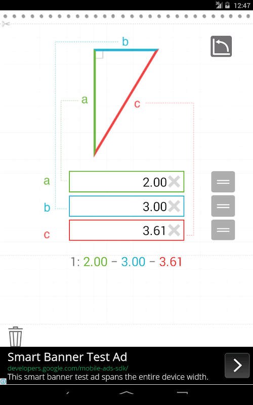 Aplikasi ini dirancang untuk menghitung panjang sisi dalam segitiga persegi panjang untuk pertukangan.