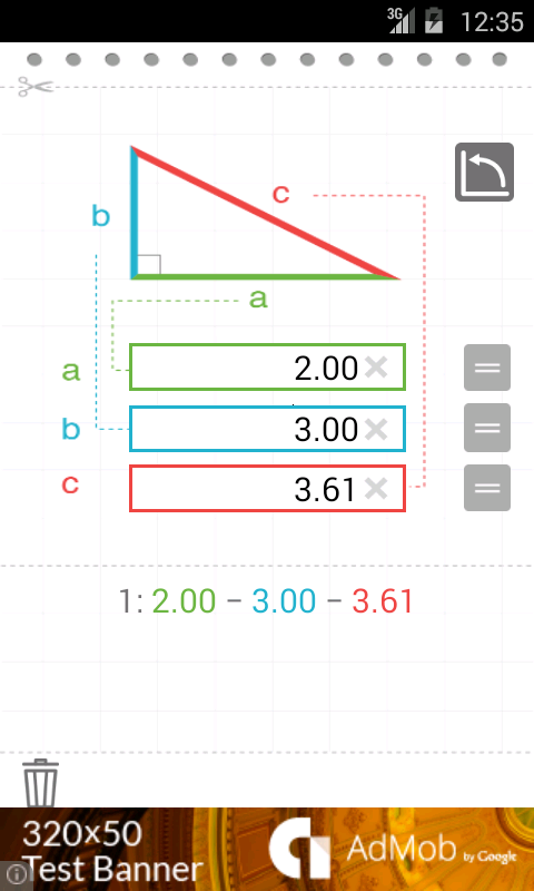 Aplikasi ini menghitung panjang sisi-sisi dalam segitiga siku-siku.