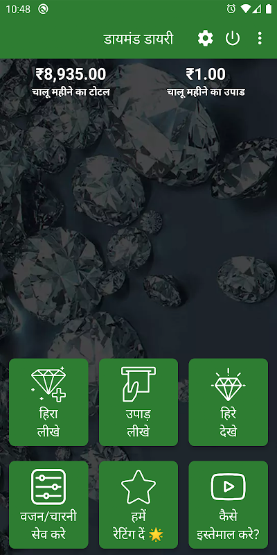Aplikasi diamond diary adalah aplikasi yang akan menyimpan berlian harian Anda dengan sifat berbeda seperti berlian, harga, total, dll.
