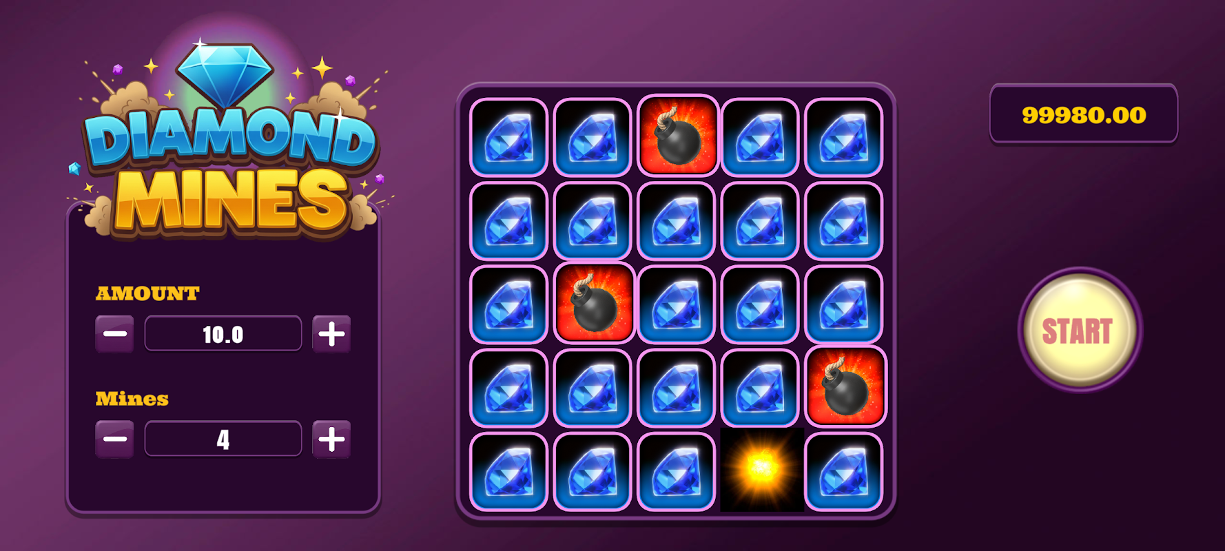 Semakin banyak berlian yang Anda kumpulkan tanpa meledakkan ranjau, semakin tinggi hadiah Anda.