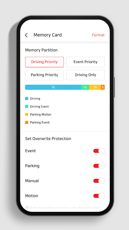 Sesuaikan pengaturan dashcam (misalnya LED, partisi memori, ADAS, dll.).