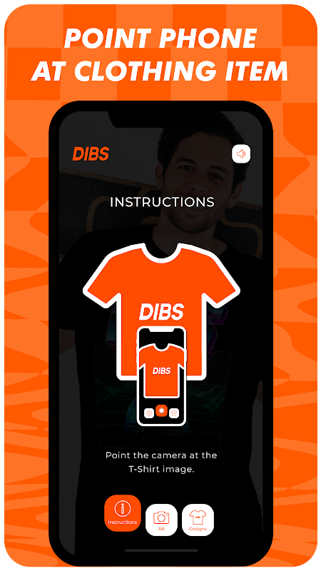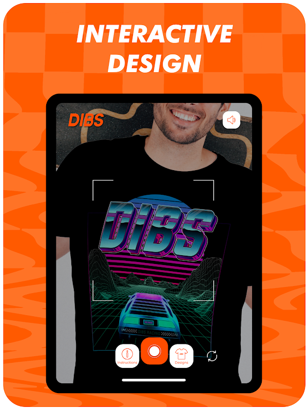 Experience augmented reality graphics like you've never seen them before! DIBS introduces our collection of wearable Augmented Reality t-shirts. An experience unlike any seen before, where graphics actually come to life! See for yourself, it's easy! First, open the DIBS app and the home screen will appear. Second, point your phone's camera at the graphic or garment that you would like to see come to life. Third, the graphic and soundtrack will now activate and begin playing on your phone screen. Move the phone around to see the Augmented Reality visual in a more 3D perspective. Tap the screen to unlock more features of the AR graphic. Make sure to screen shot or screen record and share it with your friends via our shareable social media links built into the app!