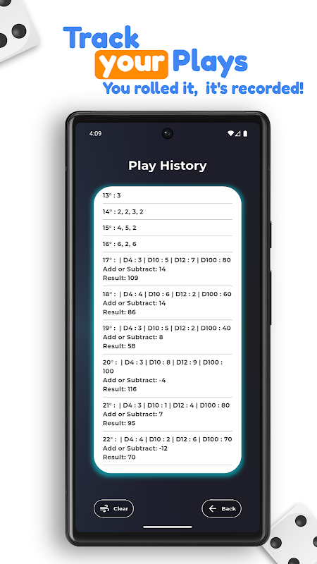 Dadu fisik dapat hilang, jatuh dari meja, menyebabkan kebingungan, atau memperlambat permainan Anda. Dengan aplikasi ini, Anda mendapatkan:
