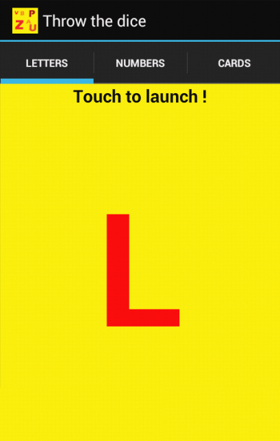 Ini adalah aplikasi termudah jika Anda ingin roll dadu dengan huruf bukan nomor! Anda menyentuh layar untuk roll, dan Anda mendapatkan hasilnya!