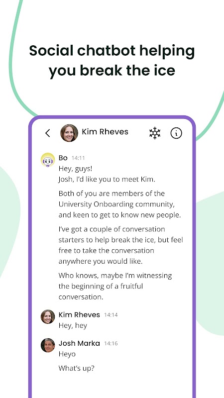 Mulai jelajahi komunitas universitas baru Anda dengan Differ. Cukup buat profil Anda, dan chatbot sosial Bo akan memperkenalkan Anda kepada beberapa siswa yang mungkin memiliki minat yang sama dengan Anda. Kami tahu memulai percakapan pertama bisa jadi canggung, jadi Bo juga akan membantu Anda mencairkan suasana.