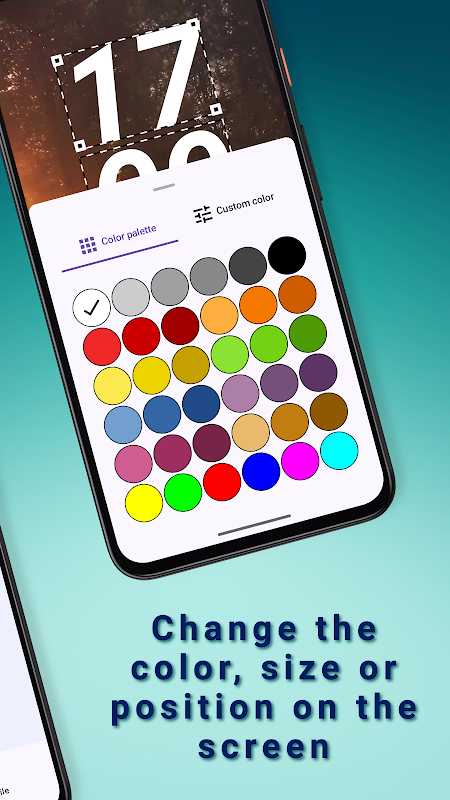 Aplikasi ini akan menunjukkan waktu yang tepat dalam layar penuh. Dalam font yang besar dan mudah dibaca. Ini menawarkan banyak tema siap pakai. Dan ketika Anda ingin menyiapkan desain Anda sendiri, Anda dapat menyesuaikan semuanya dengan editor interaktif.