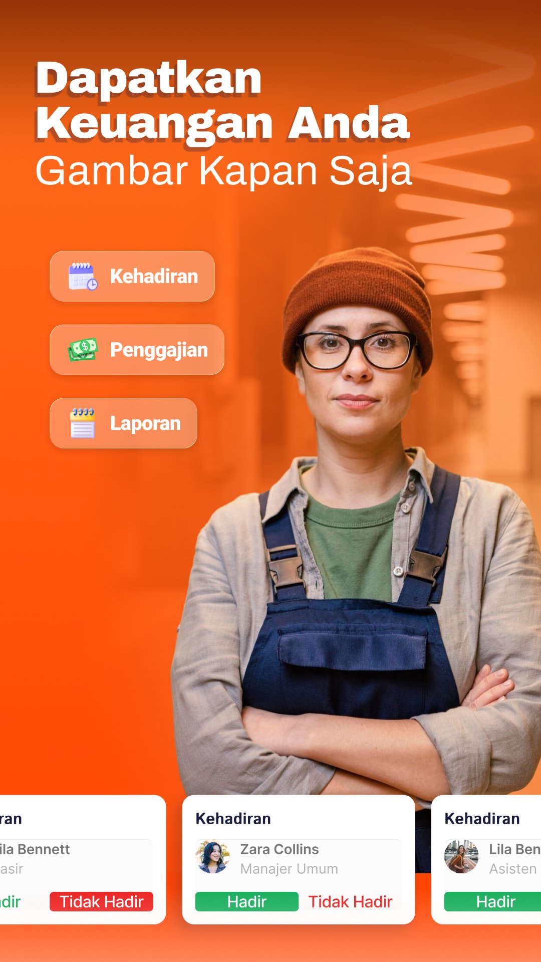 Kelola kehadiran, gaji, lembur, dan bonus staf Anda.