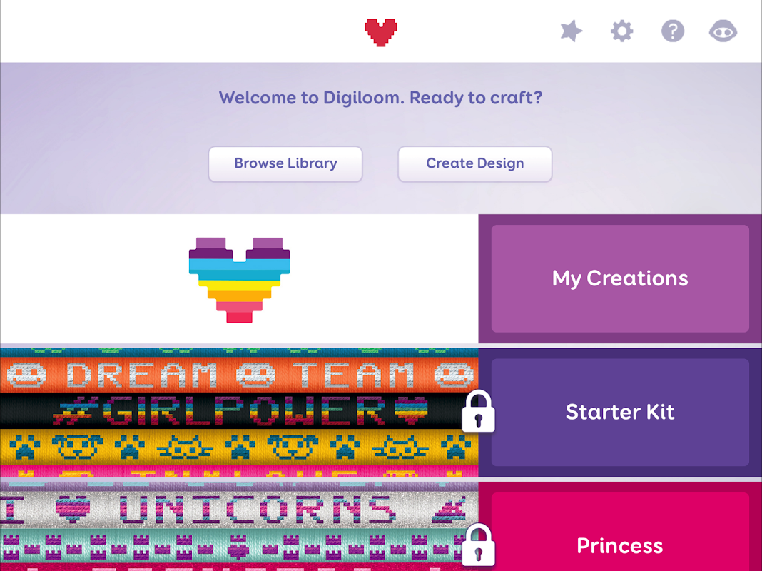 Apakah Anda siap untuk tingkat berikutnya kerajinan? Digiloom App mari kita Anda drag & drop huruf, emoji dan ikon untuk membuat pernyataan fashion Anda sendiri. Berikutnya, menenun kreasi Anda dengan bantuan dari Digiloom Mesin - itu begitu cepat dan mudah! Digiloom App berinteraksi dengan Digiloom Mesin via Bluetooth untuk mengubah desain Anda menjadi kenyataan dan membuat proyek kerajinan yang unik, seperti gelang, ikat kepala, bookmark dan hasilnya more.The fashion instan dan menyenangkan tanpa akhir dengan WowWee Digiloom!
