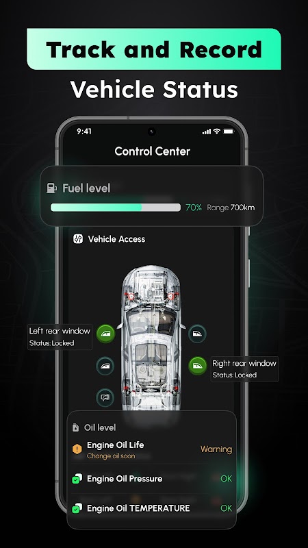 ✅ Comprehensive Vehicle Status Tracking on your phone, including tire pressure, oil / EV battery level, and receive safety alerts to avoid risks of road accidents or engine breakdown when driving. Stay informed about your car's condition before you even step inside, allowing you to plan your journeys with confidence and anticipate any potential maintenance needs.
