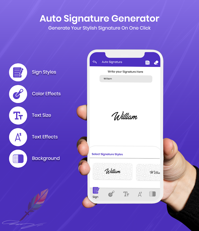apakah Anda ingin membuat tanda tangan Anda sendiri? apakah Anda ingin menulis tanda tangan Anda dengan cara yang sangat keren dan menakjubkan? aplikasi pembuat tanda tangan telah dikembangkan hanya untuk tujuan ini. Dengan menggunakan pembuat tanda tangan, Anda dapat dengan mudah membuat tanda tangan dan dapat dengan mudah menyesuaikannya sesuai dengan pilihan Anda sendiri dan menyimpan tanda tangan itu di perangkat Anda.