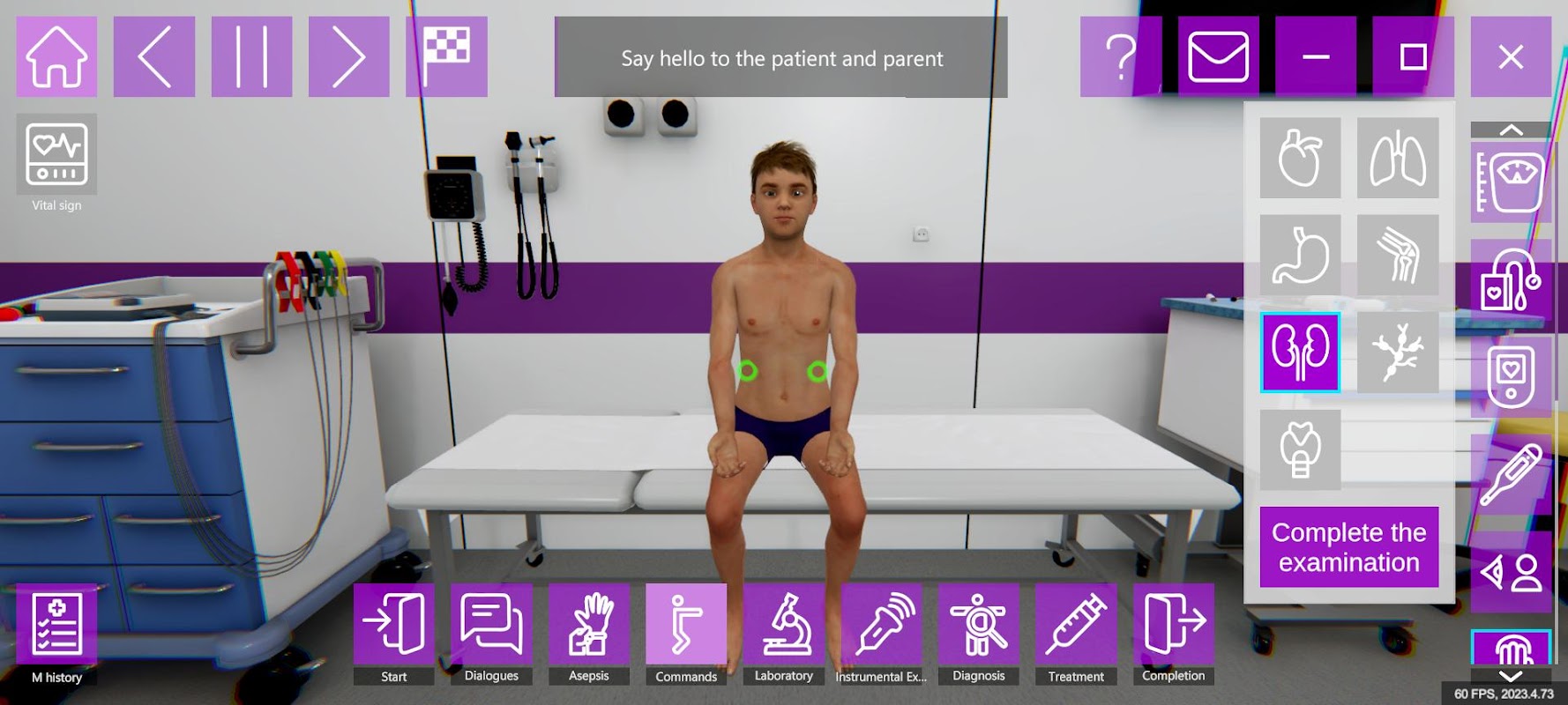 Sistem menampilkan skenario berdasarkan paspor akreditasi, intervensi bedah, dan mode eksekusi skenario yang berbeda seperti "belajar", "melakukan", dan "ujian". Ini memberikan penilaian objektif dengan laporan terperinci dan asisten virtual untuk panduan.