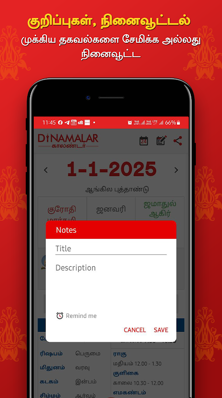 Semua detail tahun 2026 dan 2025 tersedia hanya dengan sekali sentuh. Ayo, rencanakan hari Anda dengan aplikasi Kalender Dinamalar 2026!