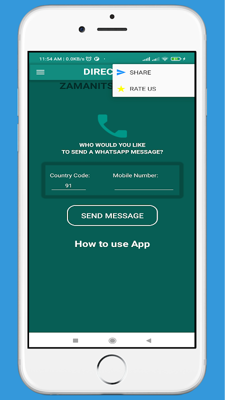 Note - This app or app developer is not associated with WhatsApp. WhatsApp is a registered trademark of WhatsApp Inc. You should follow WhatsApp's terms & condition while sending messages through WhatsDirect App.