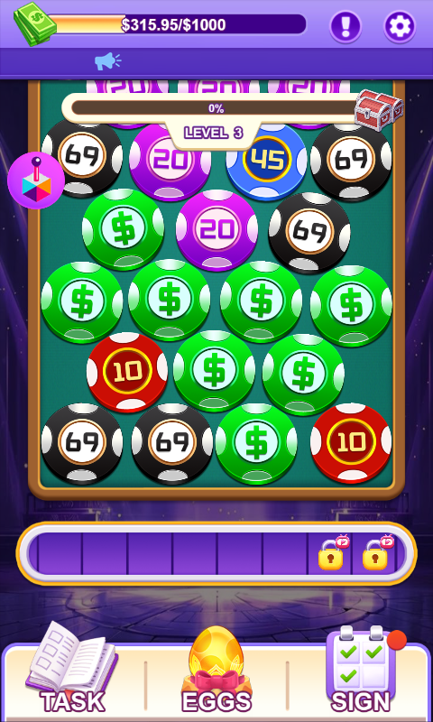 Pemain dapat menghapus chip dengan jenis yang sama dengan mengkliknya untuk memenangkan hadiah uang tunai.