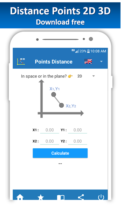 - Jarak antara dua titik, menghitung panjang dalam ruang dua titik, jarak antara dua titik di pesawat Cartesian atau di ruang angkasa, semua ini dapat Anda temukan di aplikasi kami Jarak Poin 2D 3D Kalkulator, unduh gratis.