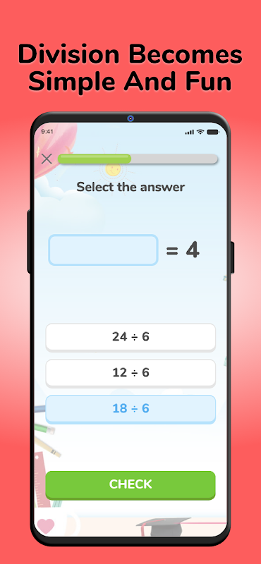 1. Beragam Latihan: Aplikasi kami menawarkan serangkaian latihan pembagian pecahan untuk dipraktikkan anak-anak. Latihan ini dirancang secara progresif, dari yang mudah hingga yang menantang, memungkinkan anak-anak meningkatkan keterampilan komputasi mereka selangkah demi selangkah.