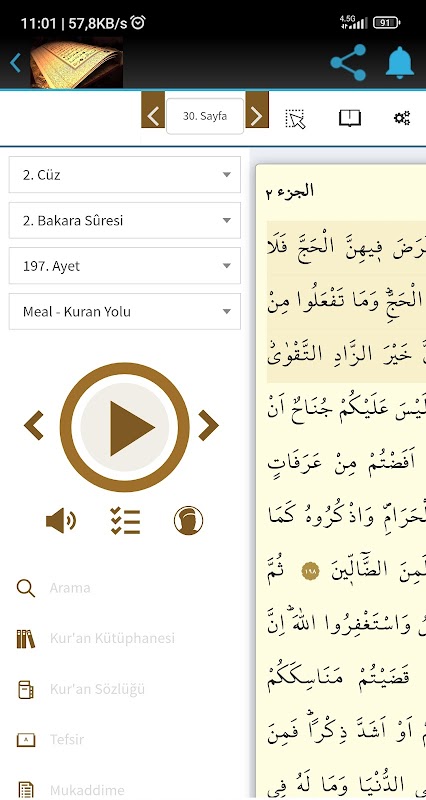 Unduh aplikasi untuk membaca dan mendengarkan kitab suci kami, Al-Qur'an. "isi aplikasi Quran"